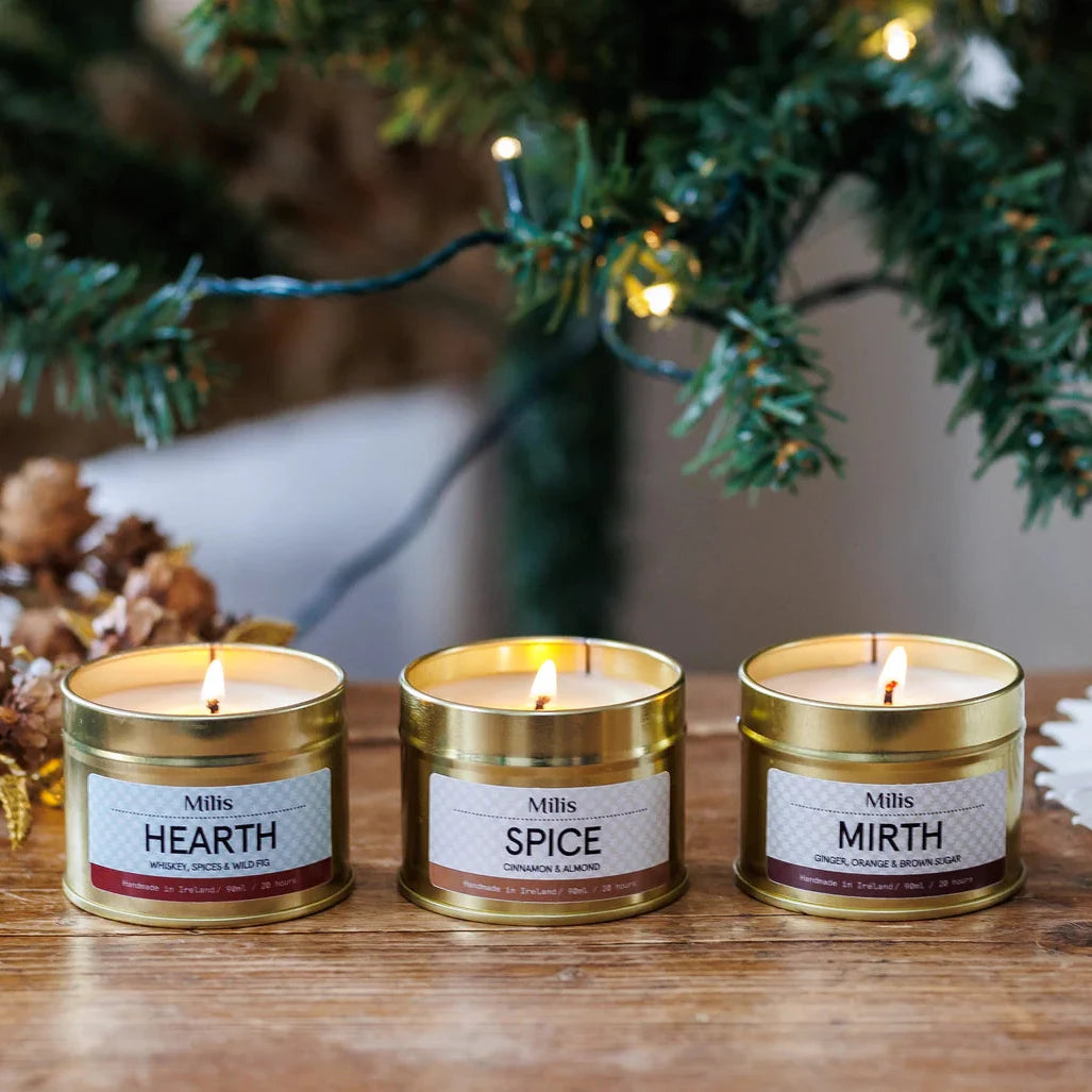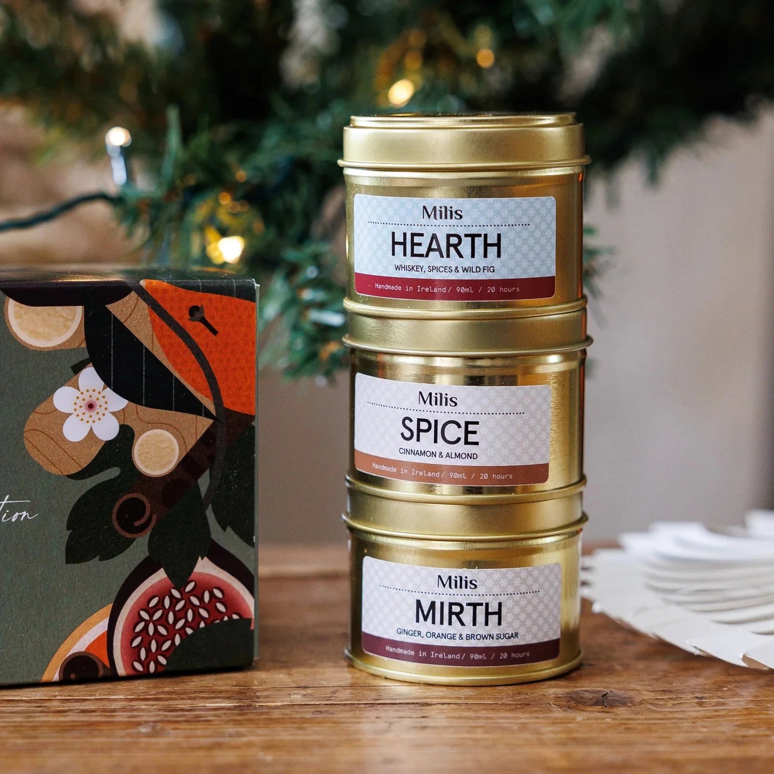 This Winter Collection features three delightful candles in elegant gold tins, designed to evoke warmth and comfort during this festive season.